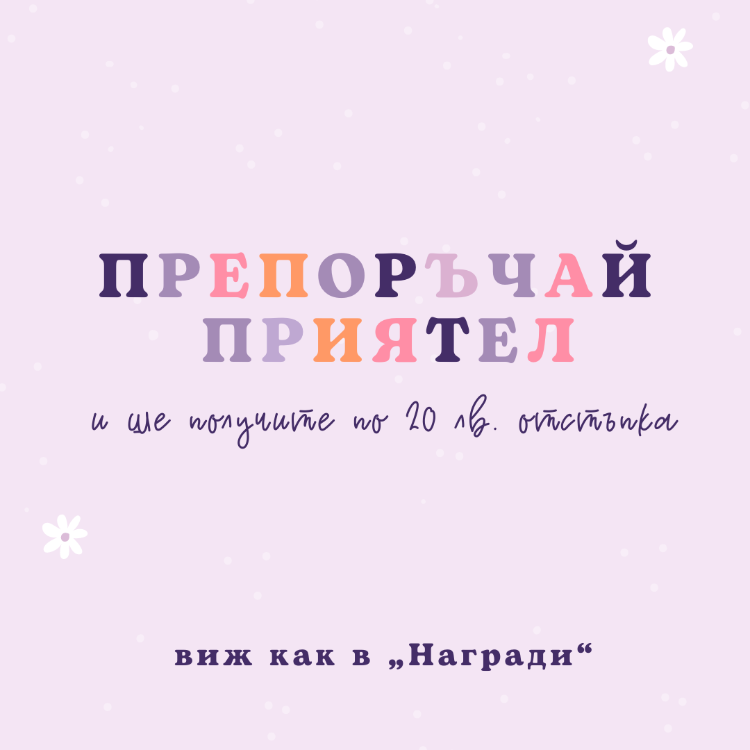 Доведи приятел и ще получите отстъпка при завършване на неготвата първа поръчка. 💗