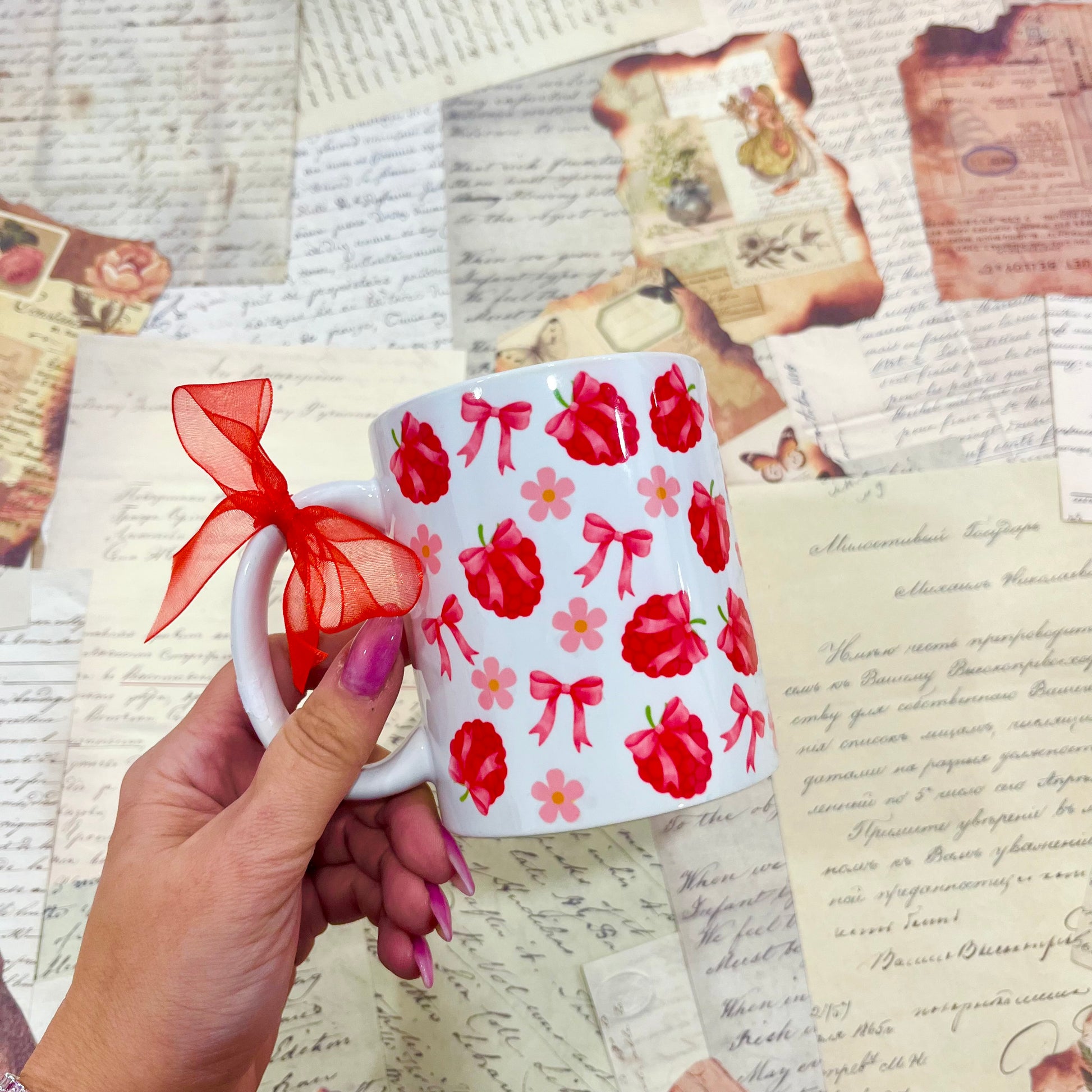 Керамична чаша с малинов дизайн