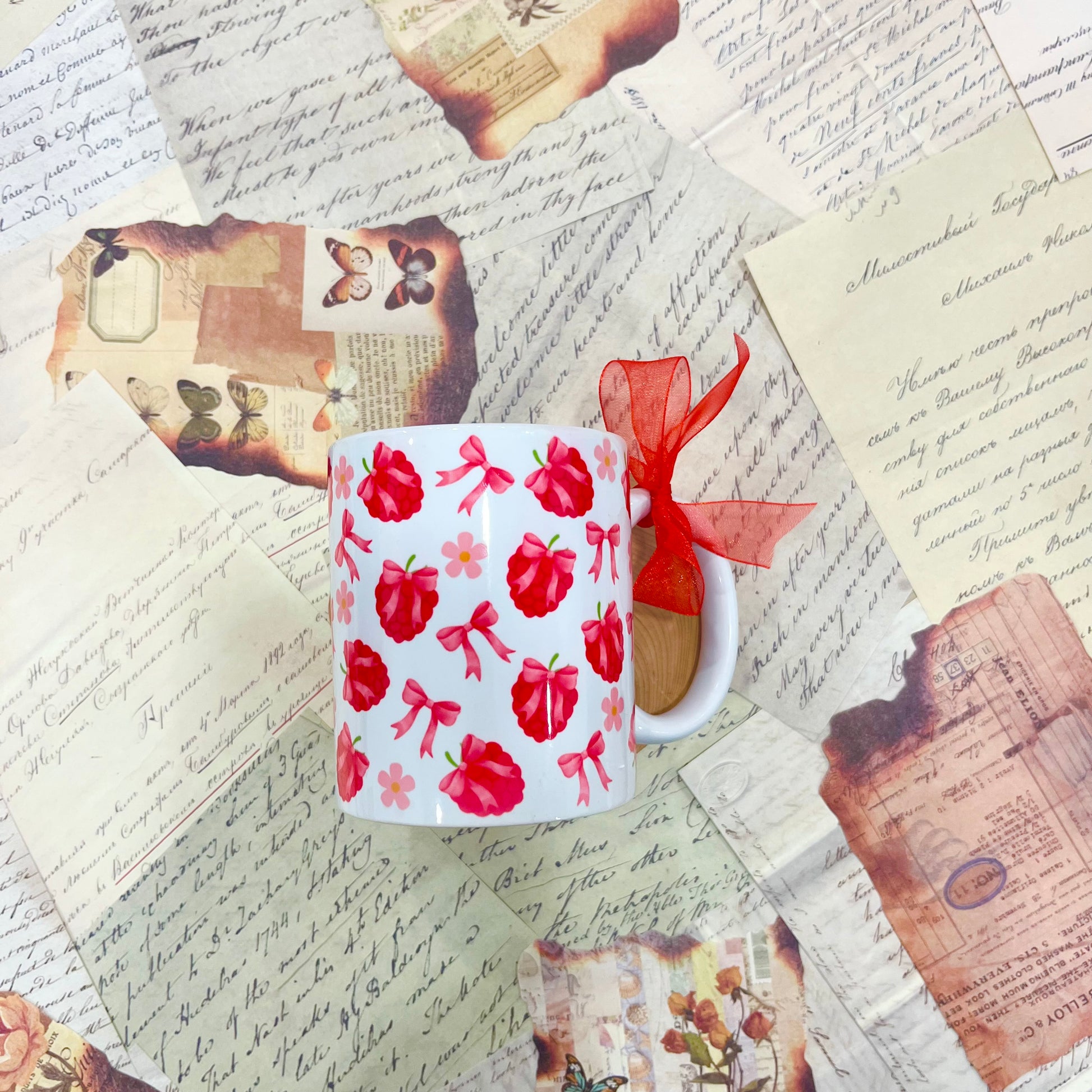 Керамична чаша с печат на малинов дизайн.