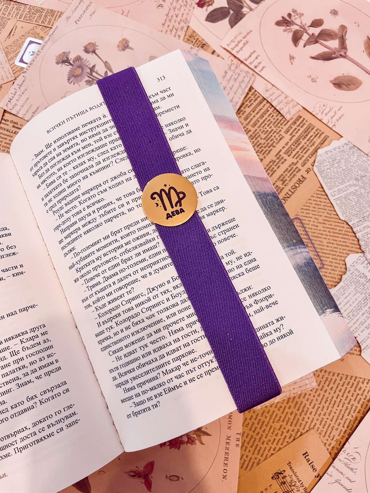 🔖 Книгоразделител с мотив на зодия Дева. Той се увива изцяло около книгата и е напълно регулируем, за да не я повреди.