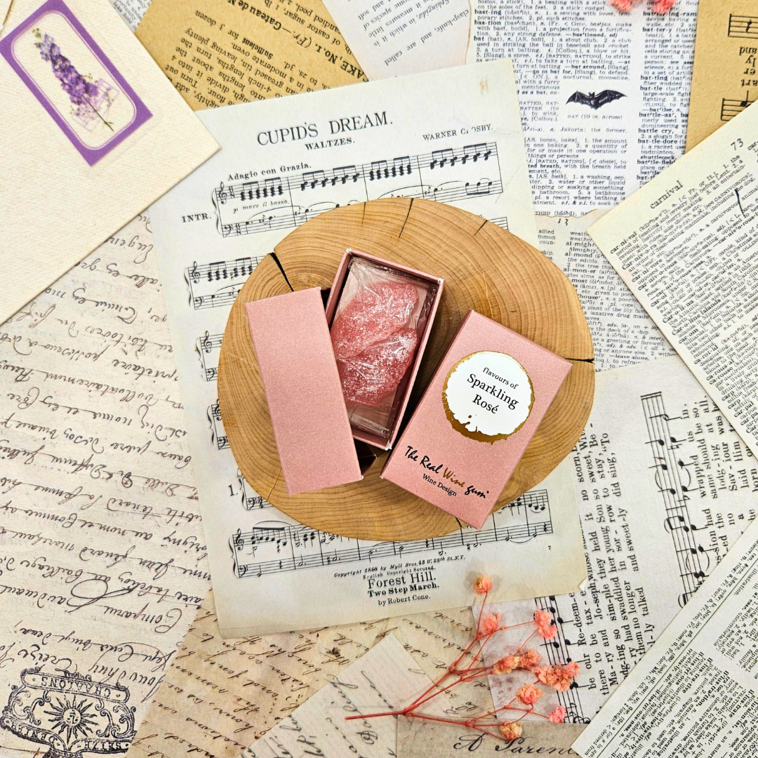 Елегантна кутия с 2 бр. желирани бонбони с вкус на пенливо шампанско. Важно да уточним, че няма алкохол в бонбоните.